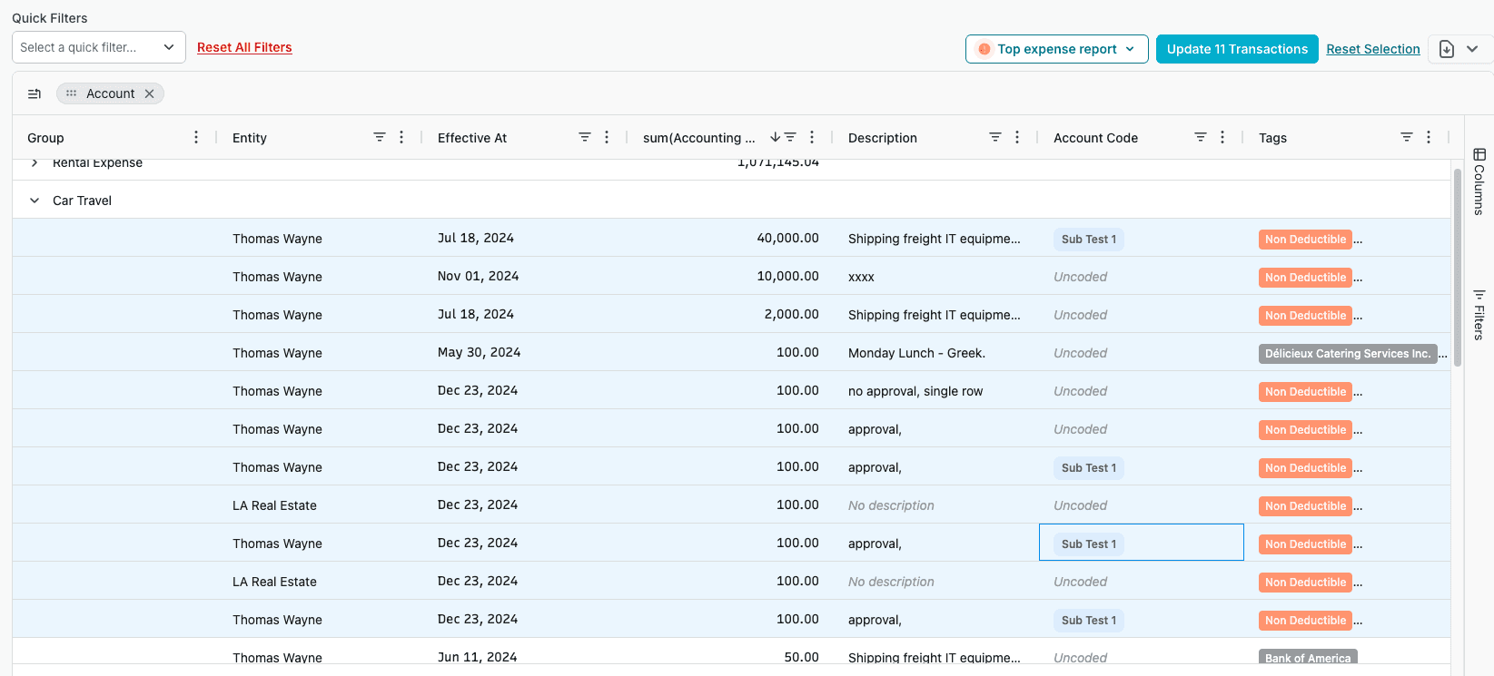 All transactions flow into a single workspace, where you can easily filter by entity, account, or workflow. Instead of managing transactions entity by entity, you can review everything together in one place.